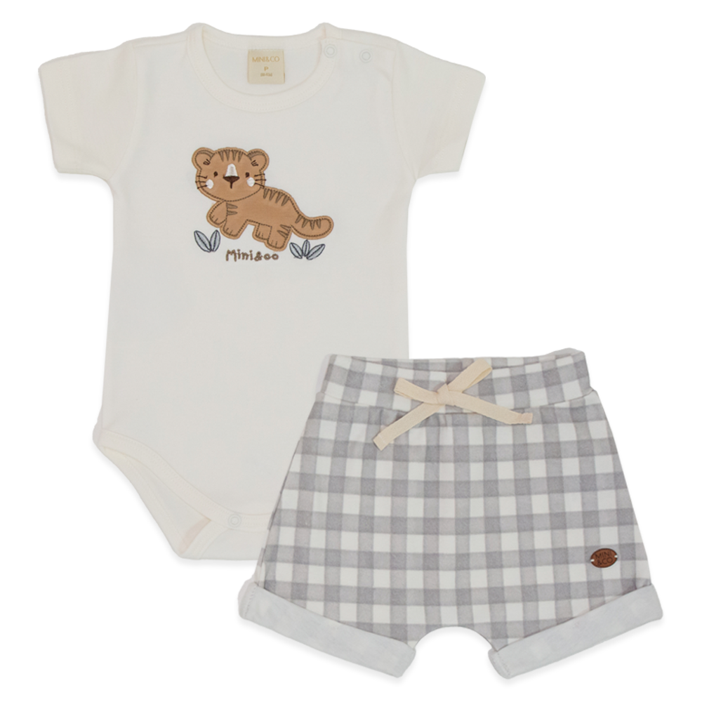 Com mangas compridas, perninhas inteiras e bordado e tigre, ele une delicadeza, aconchego e muito charme.