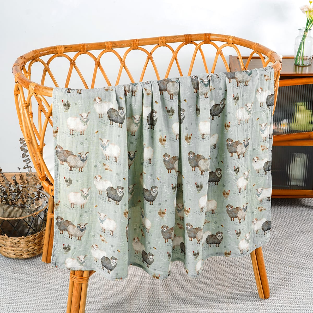 Macio, leve, resistente, respirável e hipoalergênico, feito em tecido musseline 70% fibra de bambu e 30% algodão.
