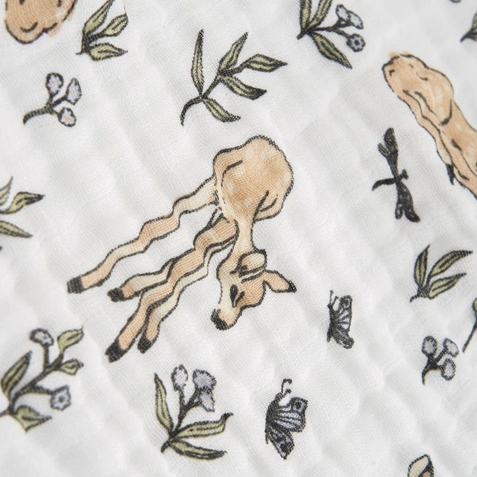 Macio, leve, resistente, respirável e hipoalergênico, feito em tecido musseline 100% algodão.