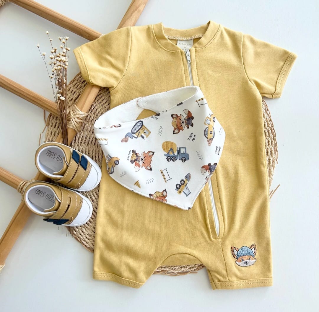 Com bordado de raposinha e babador combinando, traz aquele toque lúdico e especial que encanta no enxoval. 🦊