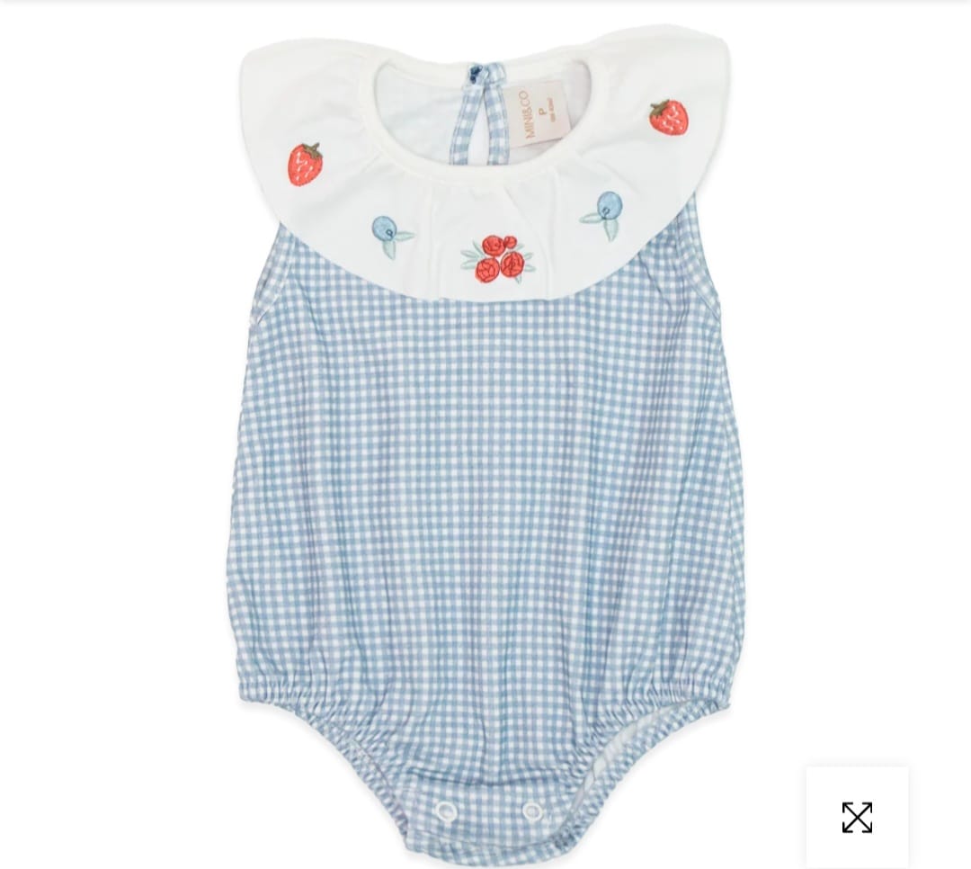 Este romper em algodão egípcio combina o charme do xadrez azul com a golinha delicada bordada com frutinhas e florzinhas. Macio, leve e confortável, ele foi feito para envolver o bebê em ternura e muito estilo. Uma peça única, que une delicadeza e praticidade no dia a dia. 💕🍓🌸