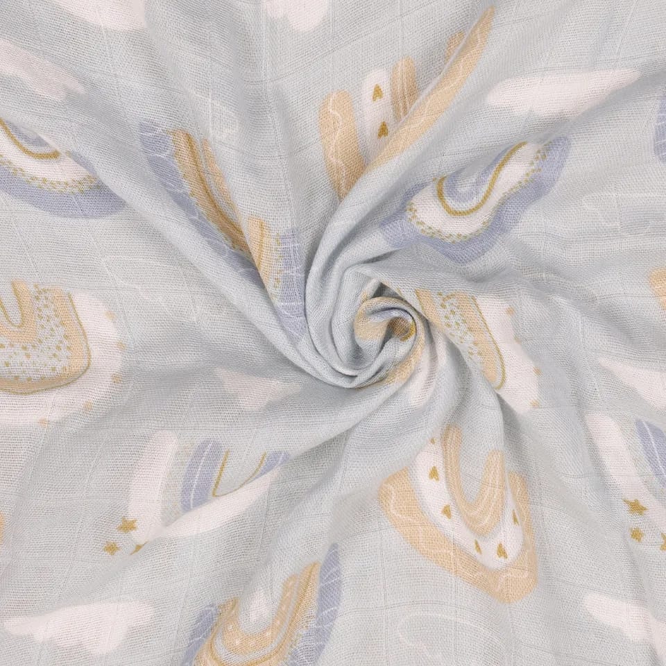 Macio, leve, resistente, respirável e hipoalergênico, feito em tecido musseline 100% algodão.