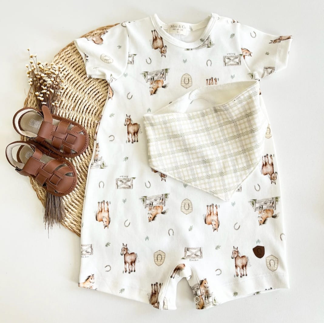 Nosso macacão curto em algodão egípcio é puro aconchego para a pele sensível do bebê. 💕